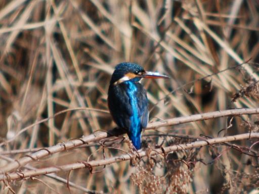 草に捕まって小魚を狩ってたけど、残念ながらホバリングは見れんかった。去年は何度も野鳥観察舎に足を運だけど一度もカワセミを見る事ができんかったのに、今年初めての散策でカワセミが見れてしまった。