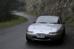 久しぶりのロドスタツーリングは楽しかったんだけど、悲しいかな天気は悪かった。今日は完全に天気予報はハズれ、天気予報では曇りで降水確率20%だったのにガッツリと雨が降ってたし。何台もバイクとすれ違ったんだけど、雨の中バイクツーリングは大変だったろーね。雨じゃ楽しめないよね、バイクは。 生憎の雨だったけど、ロドスタは楽しかった。アクセルをラフに踏んだらリヤが滑って焦ったけど、やっぱFRって面白い。一度も屋根を開けられなかったのが残念だったけど、これから先はロドスタシーズンなのでまた来ればいい。 雨が小降りになった頃合を見計らって、林道の脇にロドスタをとめて撮影。基本的に雨の日に遠出はしないので、ロドスタの雨の日の写真って意外と貴重カモ。ほかにも気に入った写真が撮れたので、久しぶりにウェブページも更新してみた(^^)